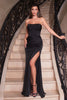 Elevate your style with this timeless strapless soft satin dress. Its fitted silhouette accentuates your curves, while the pleated bust and hip details add a touch of sophistication. The straight neckline is adorned with delicate pleats, creating a flattering and elegant look. A leg slit adds a modern twist, ensuring you look glamorous and chic at any occasion. Crafted in soft satin, this dress ensures you always look effortlessly classic yet elegant. Make an unforgettable entrance at your next formal gathering or special event with this exquisite creation.