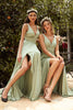 Step into the spotlight in this exquisite full-length satin gown from CinderellaDivine. The wide banded midriff draws attention to your waist, while the ruched deep V-neckline adds a touch of femininity. The sleeveless bodice features tapered shoulder straps that guide the eye to a stunning low V-shaped back, showcasing your graceful silhouette. The A-line skirt flows effortlessly with a daring high slit on the right leg, adding a hint of allure to this sophisticated ensemble. Perfectly balanced, this gown is a captivating choice for making a memorable entrance at any formal occasion.