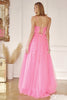 Step into a realm of ethereal beauty with this exquisite floral applique tulle prom ballgown. Its intricate bodice adorned with delicate flowers creates a captivating first impression, while the flowing tulle skirt cascades down like a waterfall of dreams. The lace-up back allows for a perfect fit, ensuring you feel both comfortable and confident. Whether you're attending prom, a wedding, or any other special occasion, this gown will transform you into a vision of grace and elegance.