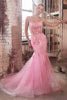 CM382 Ladivine Rose Gold Strapless Beaded Evening & Prom Dress Rose Gold