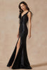 Ladivine Off Shoulder Fringe Prom Dress Beaded Slit Evening Gown CC324 Black/Nude