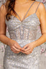 Capture attention in the GLS by Gloria GL3273 dress, a stunning sleeveless gown crafted from luxurious mesh fabric. The transparent corset top radiates elegance with its shimmering embellishments, while the thin spaghetti straps offer comfort and lead to a striking open back. The full-length sheath design includes a removable waist drape with a stylish slit, culminating in a graceful train. This gown seamlessly blends contemporary charm with classic elegance, creating a captivating look that will turn heads. Available in Silver.
