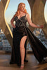 Ladivine Off Shoulder Fringe Prom Dress Beaded Slit Evening Gown CC324 Black/Nude