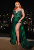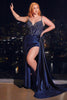 Indulge in the captivating allure of this CINDERELLA DIVINE fitted satin gown. Crafted from delicate stretch satin, this gown features a flattering pleated hipline that adds a touch of sophistication. The intricately beaded sheer bodice exudes elegance, making it the perfect choice for prom or any equally special occasion. Its alluring silhouette is designed to highlight your curves, while the side sash and daring leg slit add a touch of drama. The gathered booty detail and thin straps ensure a comfortable and stylish fit, allowing you to dance the night away with confidence and grace.