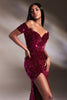 Step into the spotlight with the mesmerizing Cinderella Divine CA109 gown. Its sweetheart neckline and off-the-shoulder sleeves create an enchanting silhouette that will turn heads. The fitted bodice boasts a chic tie knot on one side, adding a touch of ruched elegance. The dress is adorned with a lavish arrangement of sequins and beads, elevating its sophistication. The back lacing guarantees a comfortable fit that accentuates your curves, while the stunning sweep train leaves an unforgettable impression. Whether you're attending a grand wedding or a glamorous gala, this gown will make you feel like a true princess.