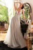Embark on a magical journey in the captivating Cinderella Divine CD874 gown. This exquisite creation features an intricate tapestry of floral lace and subtle embellishments that shimmer under the moonlight. The semi-sheer bodice captivates with its plunging V-neckline and delicate spaghetti straps, while the deep V-open back adorned with charming accents adds an alluring touch.