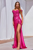 Ladivine Off Shoulder Fringe Prom Dress Beaded Slit Evening Gown CC324 Black/Nude