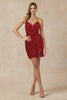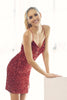 Indulge in the exquisite allure of this short velvet sequin dress by Enchanted Elegance. Crafted from luxurious velvet and embellished with shimmering sequins, it exudes an enchanting aura that will captivate all who behold it. The V-neckline and lace-up back create a flattering and alluring silhouette, while the flowing skirt adds a touch of ethereal elegance. Perfect for any formal occasion or special celebration, this dress will make you feel like a true princess.