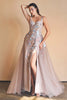 Ladivine Off Shoulder Fringe Prom Dress Beaded Slit Evening Gown CC324 Black/Nude