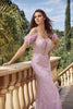 * Shimmering full-length gown adorned with intricate glitter detailing