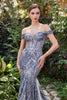 Embrace the essence of enchantment in this ethereal gown. The off-shoulder neckline captivates with its glittering beadwork and delicate floral lace, while the fitted bodice features illusion boned lines that create a touch of magic. Intricate sequins cascade throughout the dress, adding a shimmering allure. A heavily adorned sequined natural waistline defines the silhouette with grace, leading into a full-length mermaid tulle skirt that drapes effortlessly, creating a mesmerizing effect. With a mid-rise back and zipper closure, this gown ensures both comfort and style.