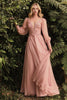 Prepare to turn heads in the enchanting Cinderella Divine CD0183 dress. This captivating ensemble features intricate beadwork and delicate floral lace appliques that create a mesmerizing effect. The plunging V-neckline and matching V-back exude sophistication, while the sheer inset at the bust adds a touch of allure. Long bishop sleeves flow gracefully, adding an air of elegance. The gathered skirt flows into a full-length A-line silhouette, creating a flattering and feminine look. Whether you're attending prom, serving as a bridesmaid, or celebrating a special occasion, this Cinderella Divine dress guarantees an unforgettable presence.