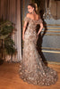 Radiate sheer elegance and captivating charm in this exquisite Cinderella Divine CC2164 gown. Adorned with a lavish crust of gilded floral lace appliques and intricate shimmering beadwork, this dress is a masterpiece that's bound to mesmerize. The off-the-shoulder neckline beautifully highlights the collarbones and décolletage, while the sheer corset bodice adds a touch of allure.