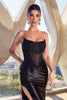 Step into a realm of enchantment with Cinderella Divine's Fitted Strapless Sheer Satin Dress. This exquisite creation is designed to evoke a sense of royalty, combining alluring features with luxurious materials. The fitted silhouette gracefully accentuates your curves, creating a goddess-like experience. The satin fabrication glides over your body, offering a smooth and sumptuous feel that is nothing short of divine. A scoop neckline adds a touch of sophistication, framing your décolletage and highlighting your radiant face. The sheer boned bodice introduces a hint of sensuality, while the thoughtful inclusion of a side leg slit ensures that each step reveals a glimpse of your enchanting legs. Prepare to feel regal and captivating in this truly exceptional gown.