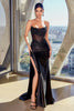 Ladivine Off Shoulder Fringe Prom Dress Beaded Slit Evening Gown CC324 Black/Nude