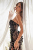 Prepare to captivate in this breathtaking gown from Enchanting Elegance. The formfitting silhouette is a canvas for dazzling beads and intricate 3D floral appliqués, creating a mesmerizing visual masterpiece. The sheer corset bodice with visible boning adds structure and allure, while the sweetheart neckline exudes elegance and is beautifully complemented by a mid-open back. A sexy high leg slit adds a touch of allure, as the sheath skirt elegantly tapers into a full-length hem and sweeping train that exudes glamour and sophistication. This chic and sophisticated gown commands attention and is sure to make a lasting impression on any special occasion.