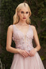 CM382 Ladivine Rose Gold Strapless Beaded Evening & Prom Dress Rose Gold