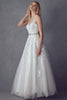 * Flowing chiffon fabric drapes gracefully, enhancing the ethereal beauty of the gown