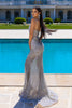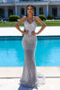 Plunging V-Neck Mermaid Prom Gown by Royal Queen NAVY/MULTI