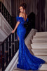 Ladivine Off Shoulder Fringe Prom Dress Beaded Slit Evening Gown CC324 Black/Nude