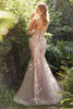 Radiantly adorned with exquisite beadwork, this strapless beauty showcases a plunging sweetheart neckline that beautifully complements the sheer side cutouts. The illusion corset back featuring exposed boning and a zipper closure is a stunning focal point that's sure to captivate attention. Sculpting a mesmerizing mermaid silhouette, the gown cascades with grace, culminating in a full-length hem that exudes sophistication and allure. This enchanting gown is perfect for making a grand entrance at any formal occasion.