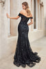 Ladivine Off Shoulder Fringe Prom Dress Beaded Slit Evening Gown CC324 Black/Nude