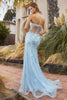 Immerse yourself in the ethereal beauty of this strapless masterpiece. Intricate beadwork shimmers and dances across its sheer side cutouts, creating an enchanting aura. The plunging sweetheart neckline accentuates your décolletage, while the illusion corset back with exposed boning and zipper closure draws attention to your hourglass figure.