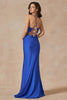 Embrace the allure of timeless elegance with this exquisite cowl neck corset top prom gown. Crafted from supple, stretchy satin, this gown hugs your curves like a second skin, creating a silhouette that will turn heads. The delicate lace trim adorning the cowl neck adds a touch of femininity, while the boned corset top cinches your waist for a flattering and unforgettable look. The high-low hemline adds a touch of drama, perfect for making a grand entrance or dancing the night away. Whether you're attending prom, homecoming, or any other formal event, this gown will ensure you shine as the star of the show.