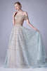 Indulge in the ethereal beauty of this enchanting gown, meticulously crafted to perfection. Its figure-hugging silhouette flatters your curves, while the shimmering embellished overlay adds a touch of captivating glamour. The contoured V-neckline and delicate spaghetti straps create a feminine allure, complemented by an open back and lace-up detail that gracefully ties at the rear. The skirt cascades to the floor in a mesmerizing mermaid silhouette, adorned with ethereal godet details that add a touch of gossamer-like enchantment. This sweeping design embodies elegance and grace, making it the perfect choice for any special occasion where you desire to shine.