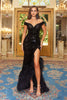 May Queen MQ1701 V Neck Embroidered Chiffon Prom Dress Black