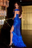 Prepare to steal the spotlight in this mesmerizing dress from Portia and Scarlett. Its intricate design exudes romance and sophistication. The sweetheart neckline gracefully frames your décolletage, while the fitted bodice accentuates your curves. The feathered high-slit skirt adds a touch of whimsy and movement, creating a captivating silhouette. The back features a keyhole with a lace-up closure, allowing for a perfect fit. Whether you're attending a grand ball or a star-studded event, this stunning masterpiece by Portia and Scarlett will leave an unforgettable impression.