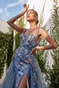 This breathtaking gown is a masterpiece of meticulous tailoring and intricate embroidery. The bodice features a beguiling sweetheart neckline framed by elegant tank straps, adorned with exquisite beaded embellishments. The ensemble flourishes into a captivating deep V-open back design, revealing a hint of allure. A tasteful slit enhances the silhouette, complemented by intricate beaded floral accents that grace the sheath silhouette. Adding to the enchantment, a resplendent overskirt cascades gracefully from the waist, gently sweeping the floor as it culminates in an alluring train, bestowing a sense of sheer elegance and sophistication.