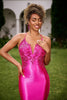 Immerse yourself in the opulence and extravagance of this exquisite Portia and Scarlett PS23445 dress. Its intricate floral lace appliques and shimmering rhinestones create a captivating visual masterpiece. The sleek design, with its plunging V-neckline and delicate spaghetti straps, exudes both elegance and allure. The backless feature and applique trim add a touch of sophistication, while the mermaid silhouette and trailing train create a stunning effect. Whether you're gracing the red carpet or attending a special occasion, this captivating Portia and Scarlett masterpiece will ensure you shine like a glamorous celebrity.