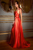 Radiate celestial charm in this mesmerizing and sleek long dress from Cinderella Divine. The sleeveless bodice features an elegant cowl neckline, offering a touch of sophistication. The mid-open scoop back is adorned with ties and spaghetti shoulder straps, ensuring both style and comfort. The lustrous fabric drapes gracefully, leading down to a full-length A-line skirt that creates an enchanting silhouette. The dress boasts a ravishing slit that starts from the waist, adding a hint of allure and movement to your stride. Illuminate any occasion with your presence in this stunning creation.