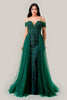 Indulge in the timeless elegance of this enchanting off-shoulder tulle gown by Cinderella Divine. The delicate tulle straps gracefully frame your collarbones, evoking a touch of romantic allure. Thin straps sit gracefully atop your shoulders, enhancing the overall design. The layered tulle overskirt cascades gracefully to the waistline sides, creating a dreamy and ethereal effect that accentuates your every movement. The lace-up corset back ensures a perfect fit while infusing a hint of romance into this enchanting ensemble. This gown is a celebration of your radiant beauty and timeless style, making it perfect for any special occasion where you aim to leave a lasting impression.