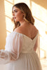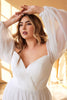 Embrace elegance and allure on your wedding day with the Cinderella Divine CD243WC Wedding Gown. This exquisite design is tailored to flatter plus-size curves, crafted from flowing chiffon that drapes effortlessly. The sweetheart neckline frames a pleated bodice, complemented by sheer bishop sleeves that add a touch of ethereal grace. The captivating V-open back reveals a hint of allure, while the A-line skirt cascades gracefully to a floor-grazing hemline with a subtle sweeping train. Let your presence captivate and enchant in this stunning Cinderella Divine creation, designed to make you feel confident and radiant on your special day.