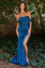 Immerse yourself in a captivating and alluring style with this stunning satin gown. Its soft silhouette is artfully draped, creating an enchanting look that will turn heads. The off-the-shoulder neckline, adorned with swathe straps, adds a touch of elegance, while a high slit reveals a hint of allure. As the skirt cascades gracefully, it exudes a sweeping finish that embodies timeless beauty and sophistication. Perfect for capturing hearts and making a memorable entrance at any special occasion, this gown is a masterpiece that will leave an unforgettable impression.