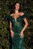 The Cinderella Divine J824 Sculpted Gown is a masterpiece of elegance and sophistication. This long and fitted gown is adorned with intricate beadwork that creates a glamorous and luxurious look. The captivating plunging V-neckline is complemented by a delicate mesh inset, while the feathery off-the-shoulder sleeves add a touch of whimsy. The fitted bodice is meticulously seamed in a corset style for a flattering fit, and the back is graced with a center zipper closure for ease of wear. The trumpet skirt gracefully flares out, creating movement and drama as it flows into a sweeping train. With its intricate detailing and flattering silhouette, this gown will ensure you make a lasting impression at any special event.