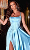 The gown's softly cascading skirt flows effortlessly, revealing a sultry slit that adds a touch of allure. It then flares into a graceful A-line silhouette, finishing with a trailing train that exudes romantic elegance. This exquisite creation is perfect for making a grand entrance at any special occasion, capturing the spotlight and leaving an unforgettable impression.