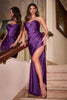 Prepare to steal the spotlight in our captivating strapless satin gown. This timeless and elegant design is crafted from luxurious semi-stretch satin, ensuring both comfort and a stunning silhouette. The fitted bodice features a boned structure for support, while the twisted sweetheart neckline adds a touch of romance. The pleated hipline creates a flattering shape, and the leg slit adds a hint of allure. Whether you're attending a formal wedding, prom, or any special occasion, this exquisite strapless satin gown will make you the center of attention. Embrace the Cinderella moment and let this gown transform you into a modern-day princess.