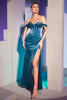 Ladivine Off Shoulder Fringe Prom Dress Beaded Slit Evening Gown CC324 Black/Nude