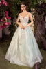 Escape into a world of enchantment with this ethereal ballgown. Its sheer corset bodice is adorned with blush organza floral appliqués, delicately placed over intricate sage embroidery. The A-line silhouette effortlessly complements the ballgown skirt, creating a flattering and alluring silhouette. With its soft and romantic aura, this gown conjures memories of long-forgotten gardens, leaving an unforgettable impression.
