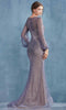 Elevate your allure in this captivating dress that effortlessly stands out from the crowd. The subtle scoop neckline beckons with understated charm, while the sheer blouson sleeves add a touch of ethereal grace, setting the stage for a mesmerizing ensemble. The illusion sweetheart-lined bodice adds an enchanting dimension, leading the eye to a full-length trumpet skirt that exudes elegance in every fold. The dress is thoughtfully completed with a horsehair hemline, lending a subtle yet striking structure to the skirt, and a sweep train that gracefully trails behind, cementing this gown's status as a true fashion statement for your special occasion.