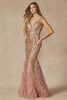 CM382 Ladivine Rose Gold Strapless Beaded Evening & Prom Dress Rose Gold