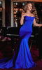 Embrace the ethereal beauty of the Portia and Scarlett PS23189 gown. This captivating masterpiece evokes the timeless elegance of a bygone era. The intricately boned bodice cinches your waist, accentuating your silhouette. Delicate foldover drapes cascade over the bodice, adding a touch of allure. The off-shoulder neckline and spaghetti straps exude a romantic and timeless appeal.