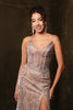 This MQ2166 gown by May Queen is crafted from tulle with intricate sparkle embroidery and a sheer, structured bodice for a secure fit. Designed for natural movement and comfort with a fitted yet flexible frame. Available in sizes 4-20.