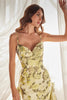 Elevate your style with this charming dress, an impeccable choice for any laidback occasion or your new favorite essential. The dress showcases a sleeveless form-fitting bodice that beautifully frames your figure, adorned with a delicate sweetheart neckline and meticulously crafted with seamless details. The ensemble is held gracefully by slender spaghetti straps, adding to its allure. Embellished with a captivating floral print, the dress exudes an air of effortless elegance. Its graceful sheath silhouette flows smoothly, enhanced by a trailing sweep train and an enchanting overskirt, making it a delightful ensemble that effortlessly combines grace and style.