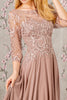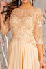 Embrace the allure of a romantic evening in the enchanting GLS by Gloria GL3446 formal gown. Its exquisite illusion bateau neckline frames your décolletage with ethereal grace, while the fitted bodice shimmers with the brilliance of sequins and embroidery. Three-quarter sleeves add a touch of elegance and support, while the scoop back design exudes a chic and sophisticated charm. The A-line skirt cascades gracefully to the floor, creating a captivating silhouette that will turn heads. Available in a captivating palette of Champagne, Mauve, and Navy, the GLS by Gloria GL3446 dress is the perfect choice for any special occasion.