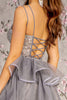 Capture attention in the GLS by Gloria GL3273 dress, a stunning sleeveless gown crafted from luxurious mesh fabric. The transparent corset top radiates elegance, embellished with shimmering glitter sequins, gems, and beads. Thin spaghetti straps offer comfort and lead to a striking open back with a lace-up tie and central zipper closure for a perfect fit. The full-length sheath design includes a removable waist drape with a stylish slit, culminating in a graceful train. This gown flawlessly blends contemporary charm with classic elegance for a captivating look. Available in Silver.