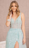 Step into the spotlight and embody pure feminine elegance in the captivating GLS by Gloria GL3119 gown. This sleeveless masterpiece is adorned with intricate sequins and beadwork that shimmer and gleam under the lights. The sheer bodice features a plunging V-neckline, showcasing your décolletage. The strappy low-cut back adds a touch of allure, while the side draped overlay and thigh-high leg slit create a glamorous silhouette. The full-length sheath silhouette elongates your frame, and the sweeping train completes the look with a touch of drama. Available in Baby Blue and Black, this gown will make you feel truly special for any formal occasion.